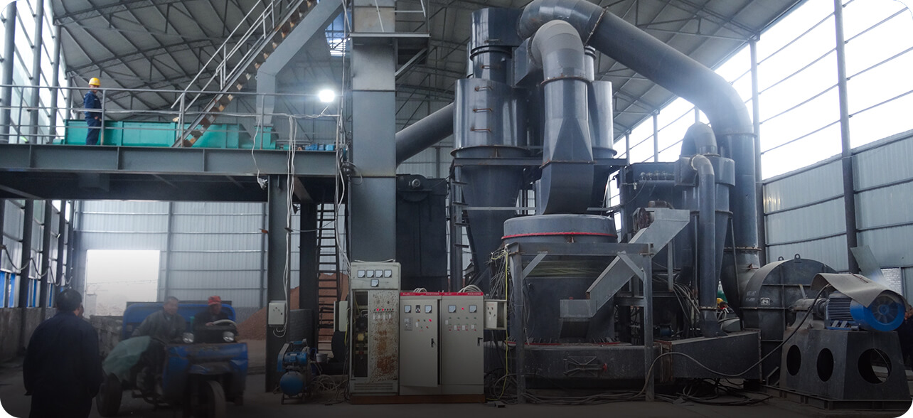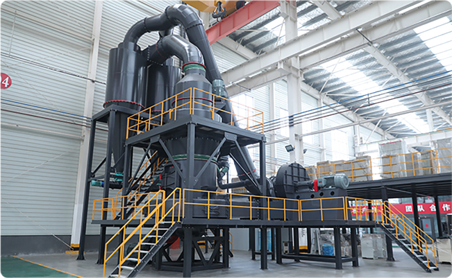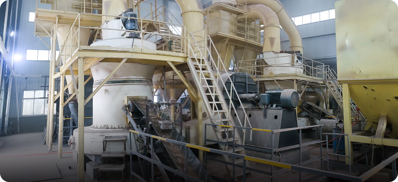 大塊物料進(jìn)入顎式破碎機(jī)后進(jìn)行初級破碎,然后由斗式提升機(jī)將合適粒度的物料均勻送至儲料倉。通過電磁振動給料機(jī)把儲料倉的物料均勻、定量、連續(xù)地送到磨粉機(jī)的研磨室內(nèi)進(jìn)行研磨。研磨后的粉末在鼓風(fēng)機(jī)的作用下吹向選粉機(jī)進(jìn)行分選,合格細(xì)粉則由管道送至儲料倉,分選后的不合格粉料回落繼續(xù)研磨,最后經(jīng)出料閥輸出即為成品粉料。篩分后合格的成品細(xì)粉隨管道裝置進(jìn)入收塵器內(nèi)分離收集,并統(tǒng)一用裝粉罐車打包或送入成品料倉內(nèi)即可。