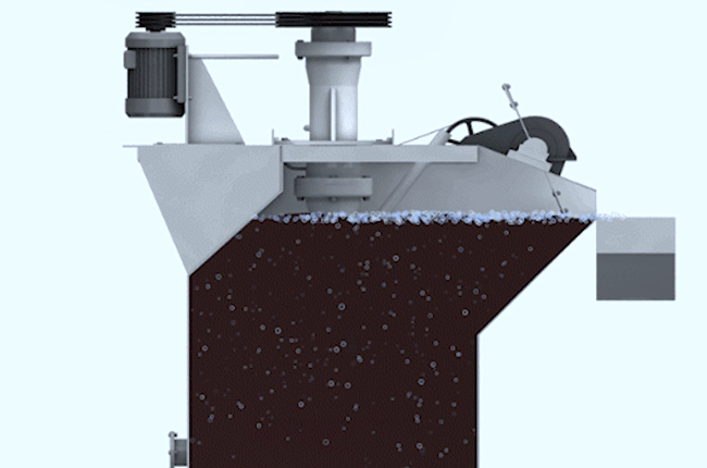 浮選機主要用于選別金、銀、銅、鐵、鉛、鋅、鉬、鎳、鋁等金屬礦物。也可以用于黑色金屬和非金屬的選別。該機由電動機三角帶傳動帶動葉輪旋轉,產生離心作用形成負壓一方面吸入充足的空氣與礦漿混合,一方面攪拌礦漿成藥物混合,同時細化泡沫,使礦物粘合泡沫之上,浮到礦漿面再形成礦化泡沫。調節(jié)閘板高度控制液面,使有用泡沫被刮板刮出。